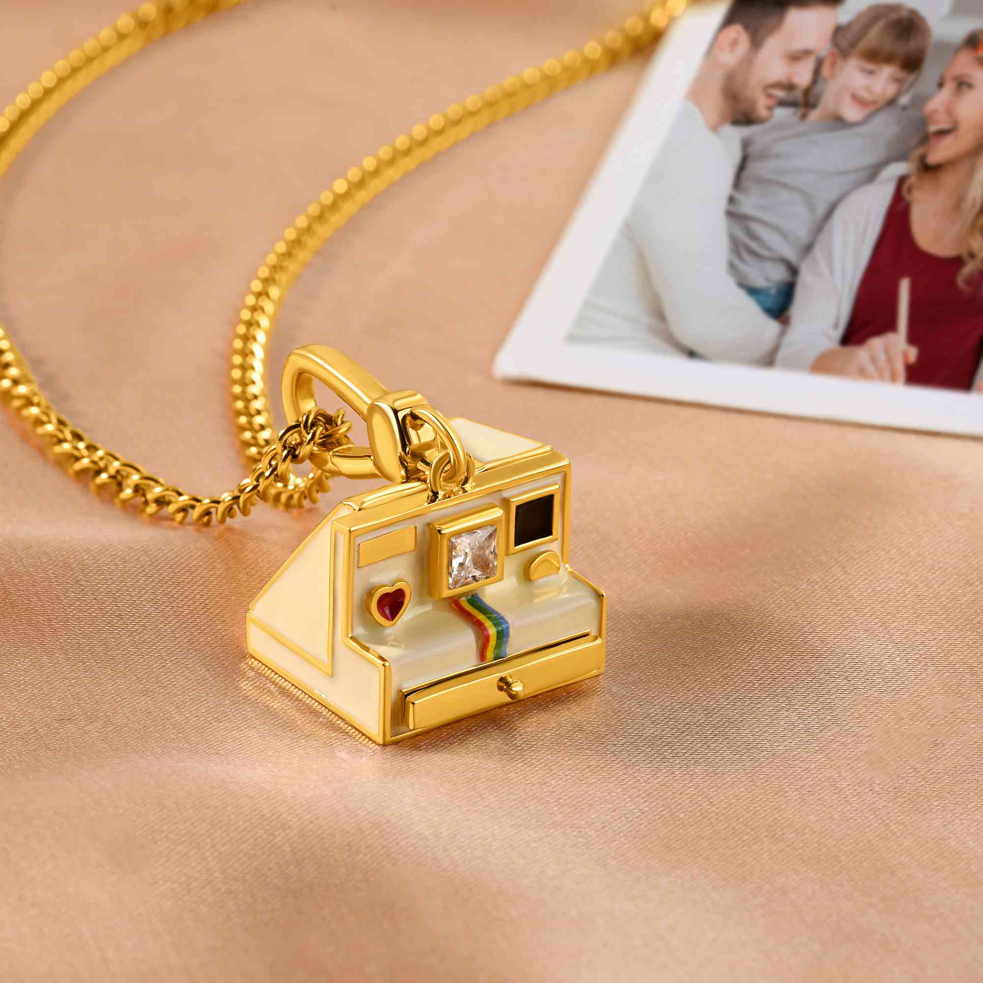 Retro Camera Inspiration - This pendant takes the shape of a classic retro camera, blending vintage charm with a clean, modern feel. Its miniature design celebrates the art of photography and keeps a meaningful moment close to the heart.